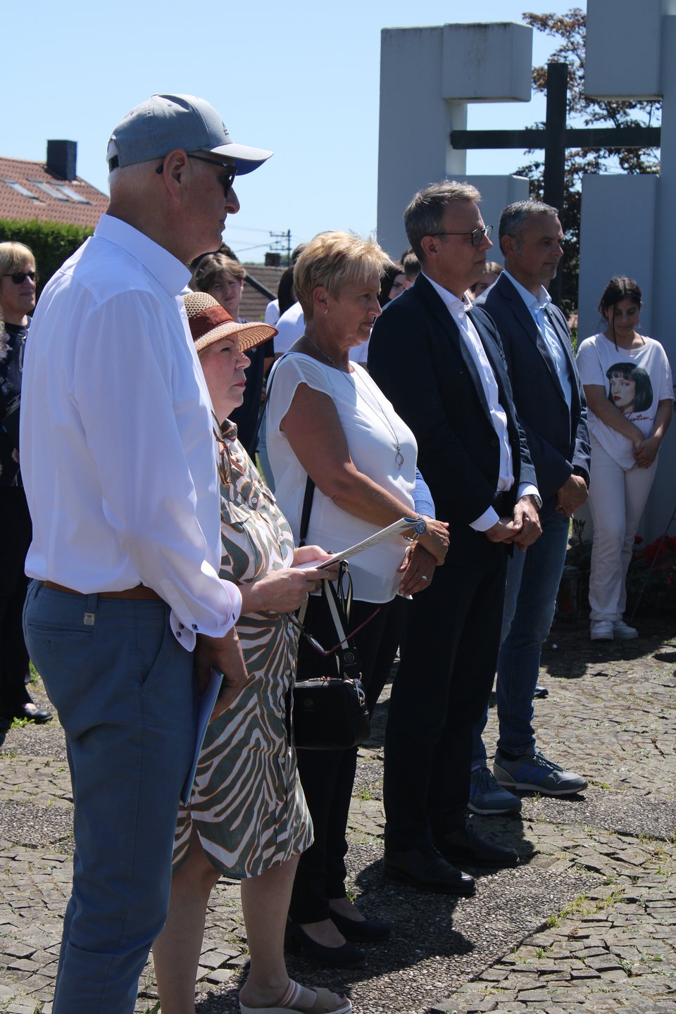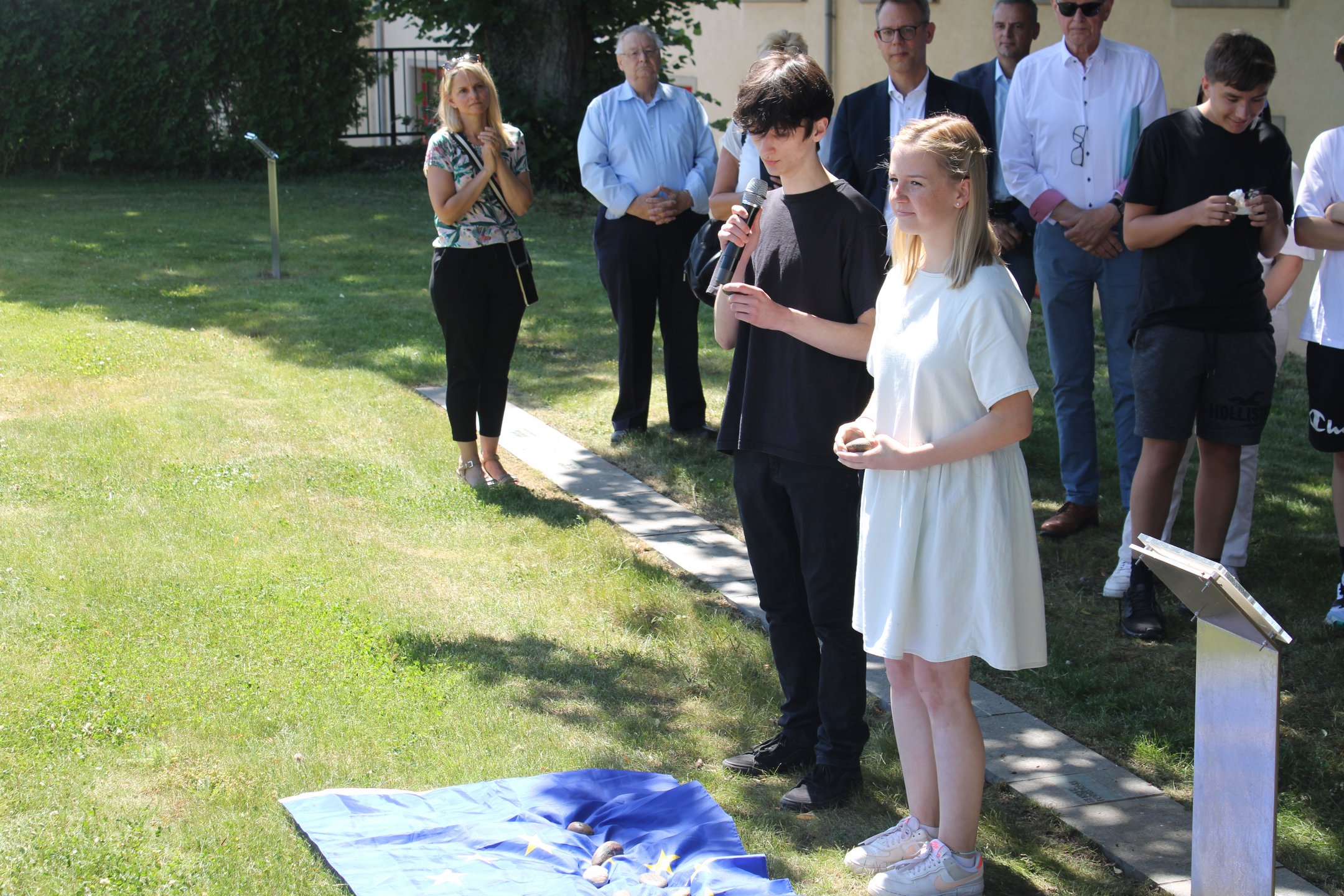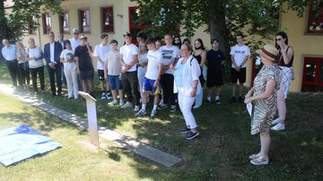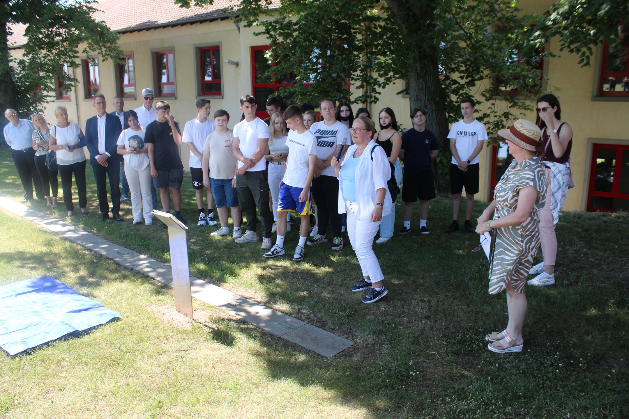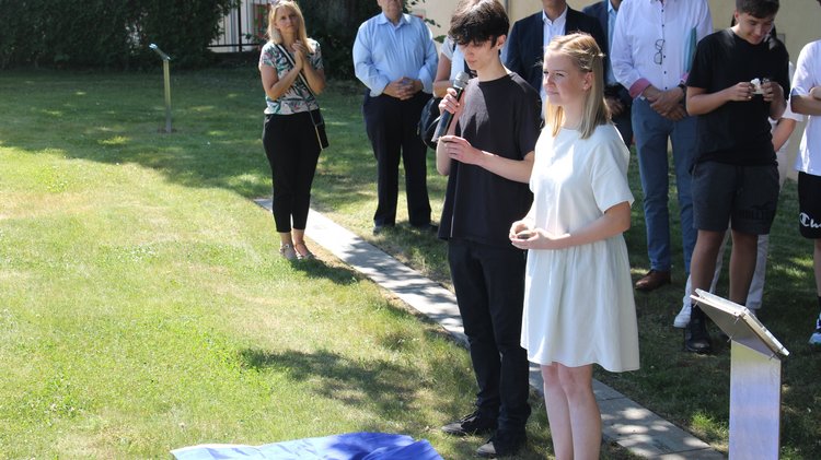 15 Schülerinnen und Schüler des Johannes-Kepler-Gymnasiums sowie Vertreter der Landesregierung, des Landkreises, der Stadt Lebach, der Kirchen und lokaler Vereine weihten heute gemeinsam mit dem Landesverband Saar des Volksbundes Deutsche Kriegsgräberfürsorge e.V. feierlich eine neue Infotafel und eine weitere Stele am Lernort Lebach ein.